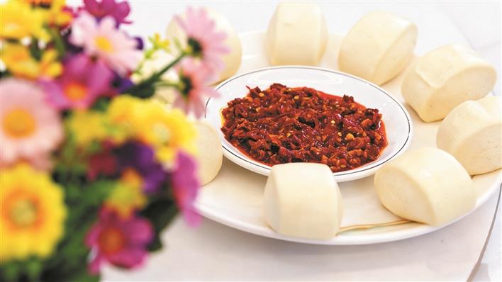 开来红・粮椒一口香,是二十一团特色美食,由手工馒头与秘制辣椒酱搭配而成。馒头选用该团优质小麦粉,手工蒸制,蓬松柔软、麦香清甜,承载着垦区粮仓的厚重底气;辣椒酱以地理标志产品“开来红”辣椒为主料,搭配鲜牛肉与天然佐料,文火慢熬1.5至2小时,色泽油亮、香辣适中。面香与椒香交融,口感醇厚回甘。