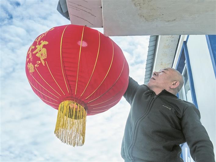2月16日,陈旺刚在执勤点悬挂灯笼。兵团日报常驻记者 苟汇敏 通讯员 陈昆 摄