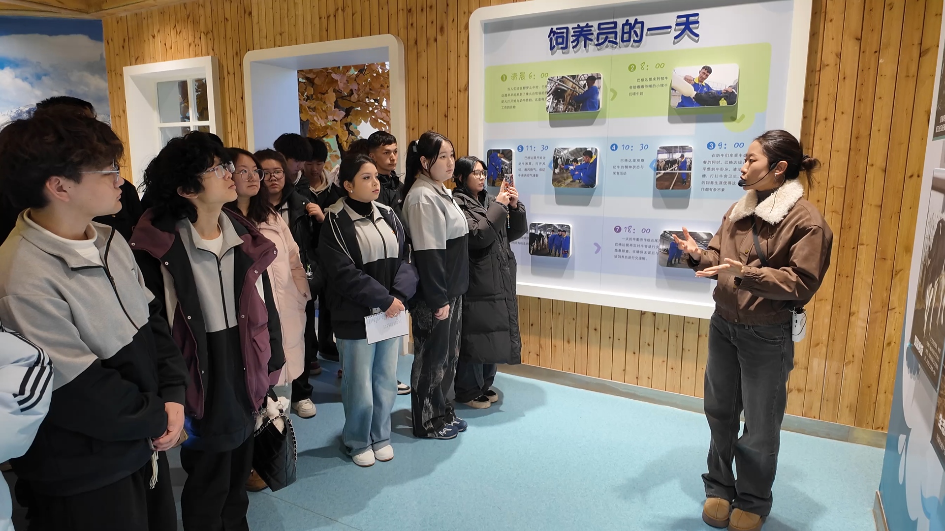 讲解员为学生介绍牧场饲养员日常工作流程。