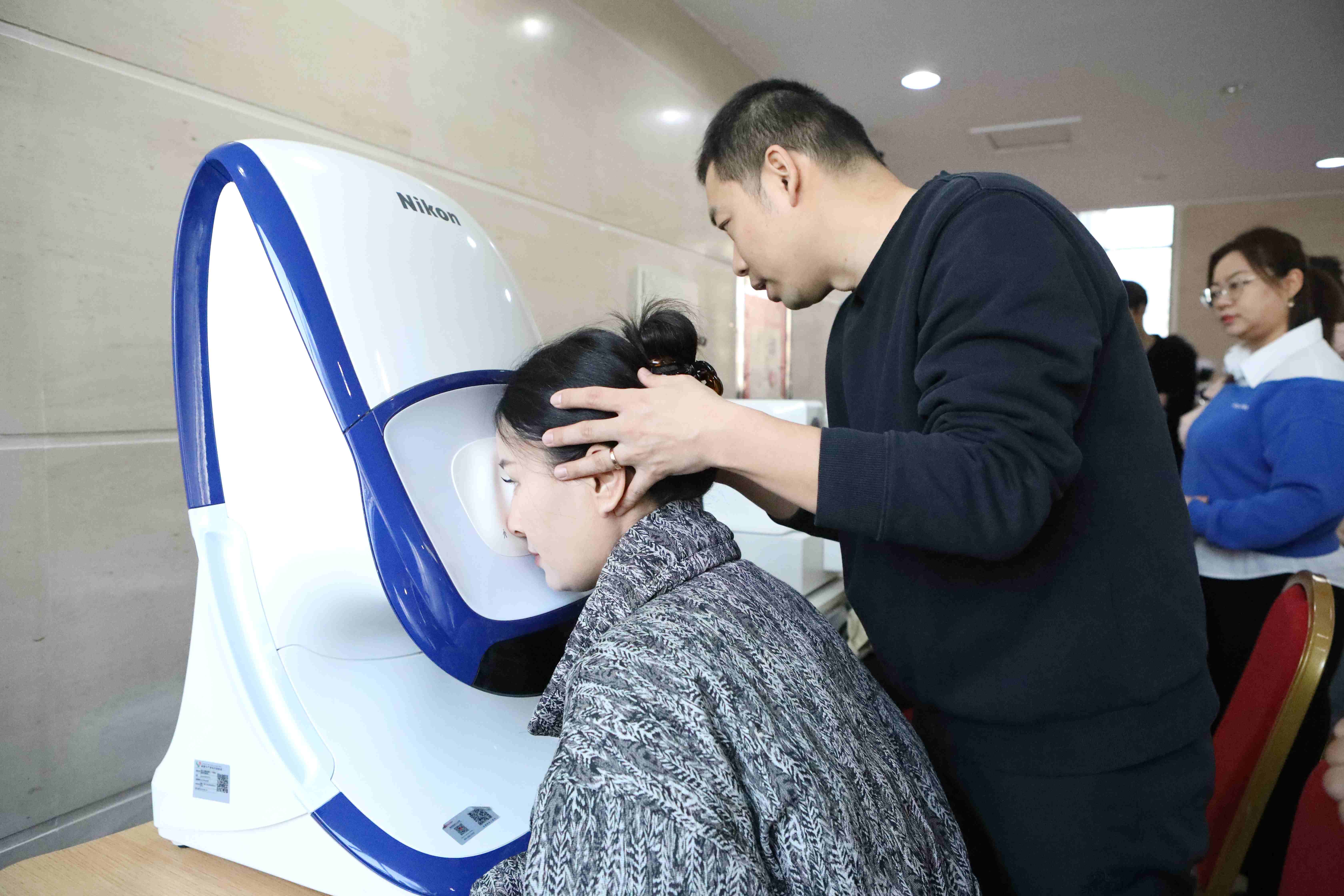 医生正在做眼科检查。胡杨网记者 李雨浪 摄