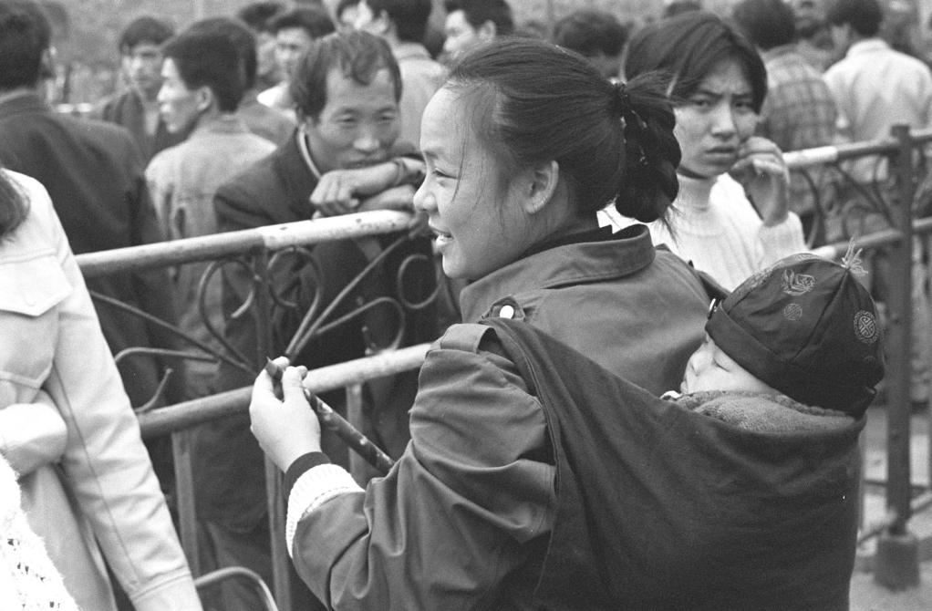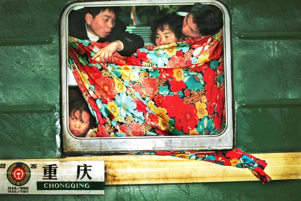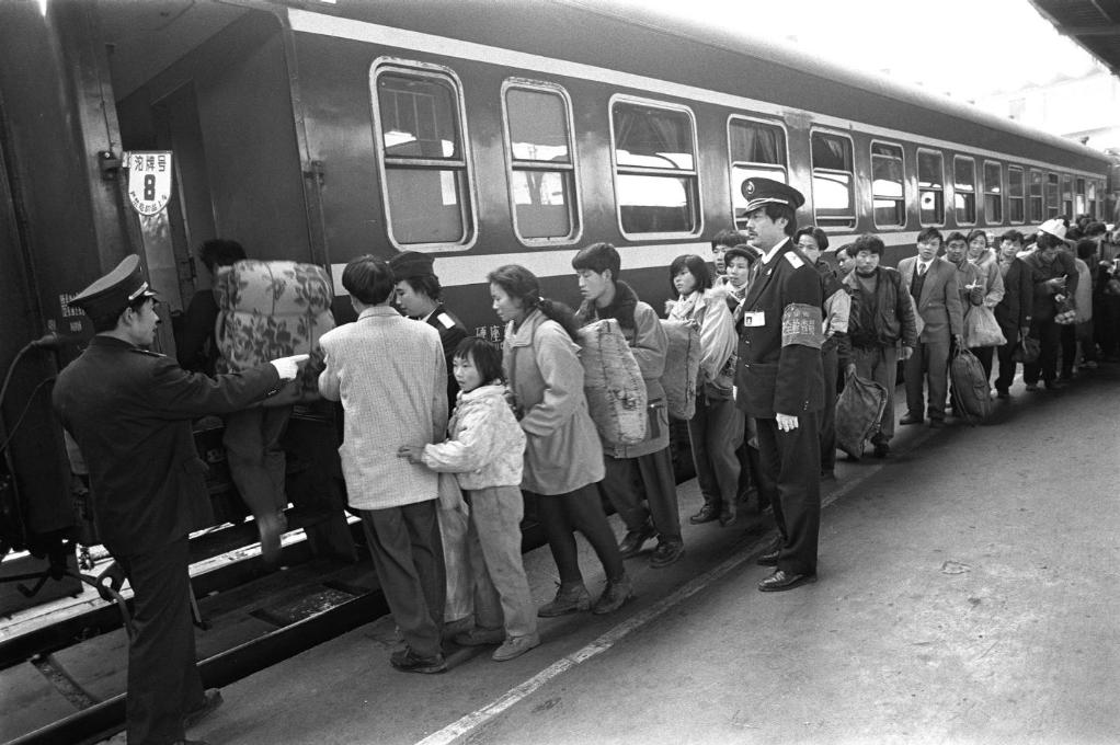 1995年春运期间,在广州火车站,来自四川的“打工妹”赶早乘火车准备回家过年。新华社记者 陈学思 摄