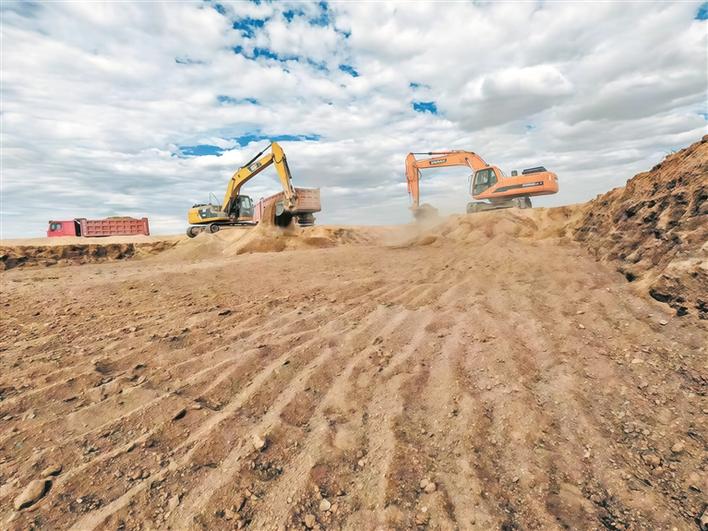 兵团建工集团承建的新金斯特煤炭运输道路项目施工现场,施工人员正在进行道路挖方作业(摄于2025年8月18日)。山巴依尔 摄