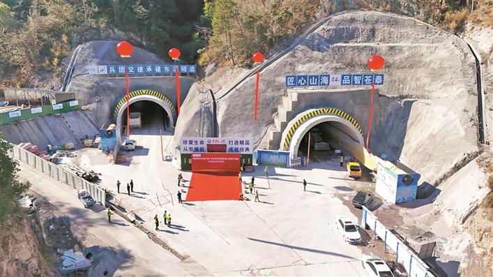 由兵团建工集团下属国有控股企业——兵团交通建设有限公司承建的浙江苍南至泰顺高速公路第9标段项目建设稳步推进。图为该项目东溪隧道双洞顺利贯通现场,该隧道是全线首座贯通的长隧道(摄于1月26日)。姜珊 摄