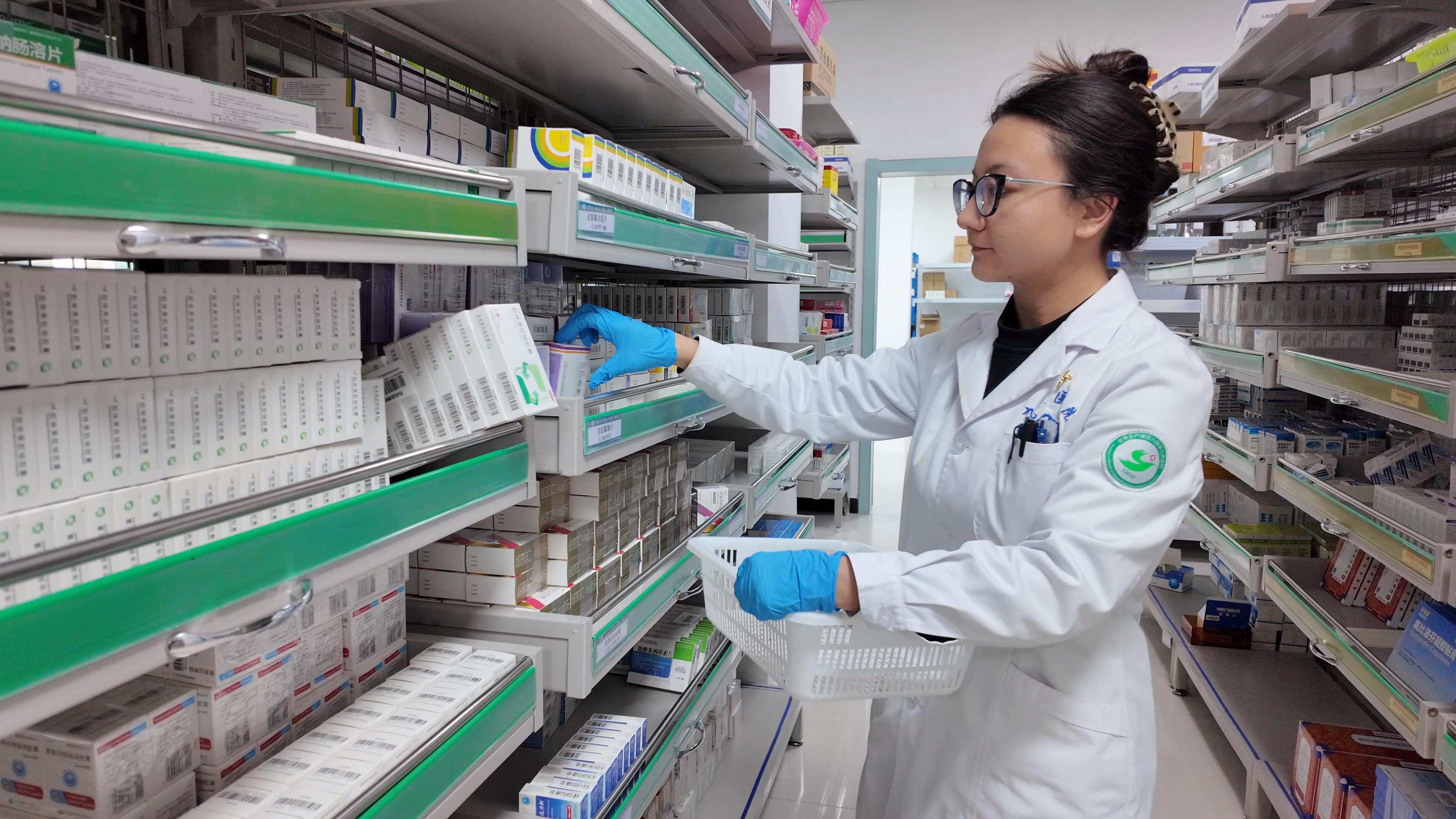 3月18日,九师医院药房工作人员正在为患者取药。殷高峰 摄