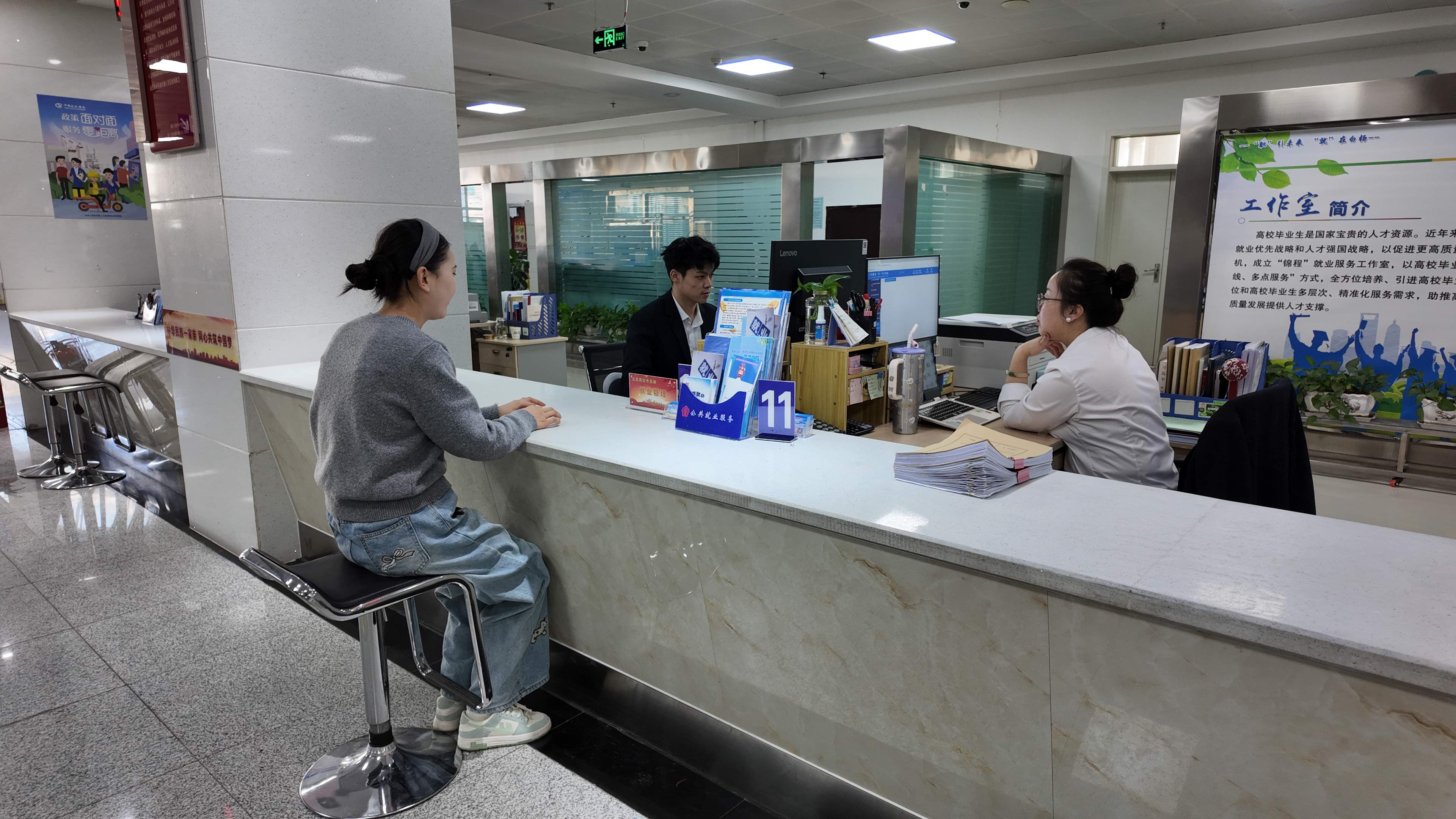 3月18日,人社局服务大厅内,工作人员正在为群众推荐合适岗位。殷高峰 摄