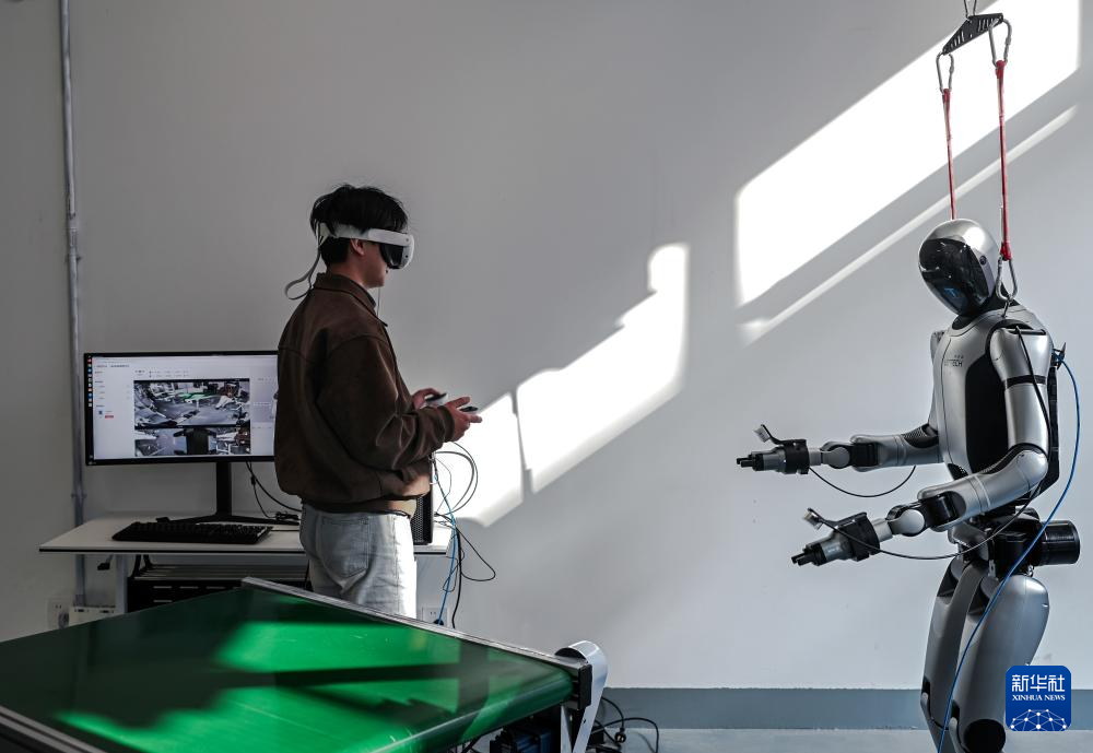 在四川人形机器人多模态数据采集测试中心,数据采集员在调试机器人(2026年2月24日摄)。新华社发(何海洋摄)