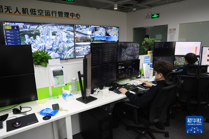 在位于深圳的美团无人机低空运行管理中心,机长们监看无人机飞行情况(2026年2月6日摄)。新华社记者 毛思倩 摄