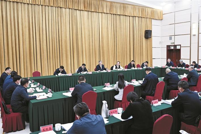 三月二十四日,自治区党委副书记、兵团党委书记、政委何忠友在三师图木舒克市宣讲全国两会精神并调研。这是何忠友主持召开座谈会,听取三师图木舒克市工作汇报。兵团日报全媒体记者 张鑫 摄