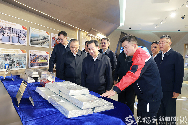 3月25日,自治区党委书记陈小江、自治区主席艾尔肯·吐尼亚孜在位于洛浦县的和田昆冈经济技术开发区,实地了解新疆昆仑锌业有限责任公司生产运营情况。石榴云/新疆日报记者 崔志坚 摄