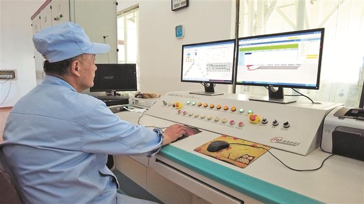3月16日,在新疆昌新农业开发有限公司面粉生产车间,工人通过电脑检查面粉的质量。王雪洁 摄