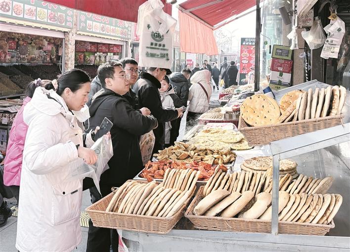 3月7日,市民在石河子市幸福路步行街上选购美食。兵团日报常驻记者 李秀 通讯员 郭凯丽 摄