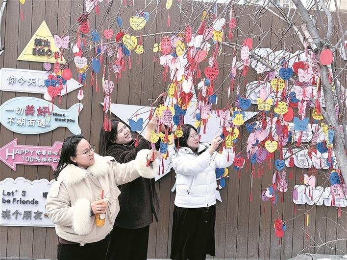 3月6日,市民在石河子市幸福路步行街许愿树下许愿。兵团日报常驻记者 李秀 通讯员 郭凯丽 摄