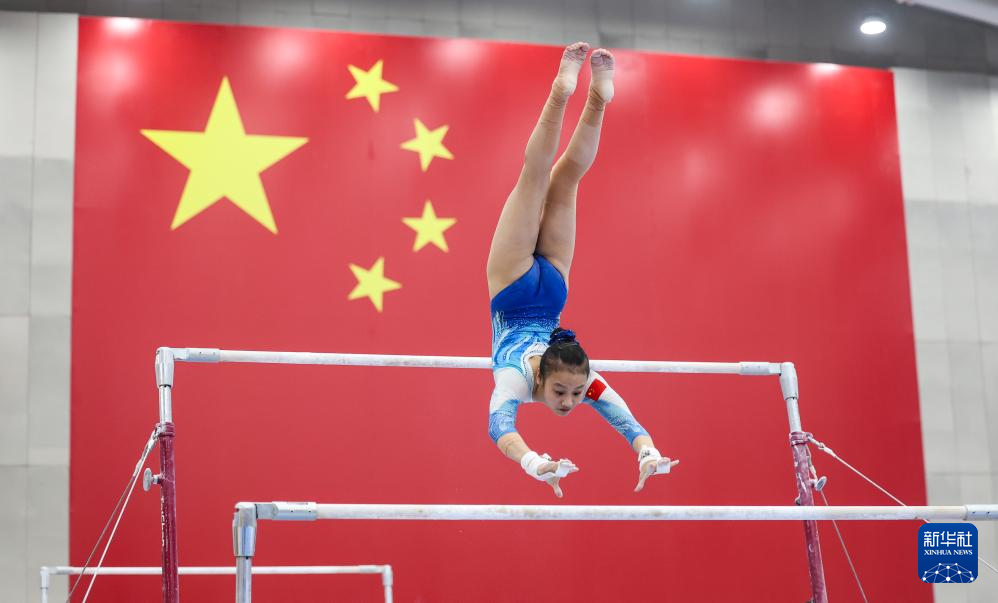 3月26日,邱祺缘在高低杠测试中。新华社记者 王东震 摄