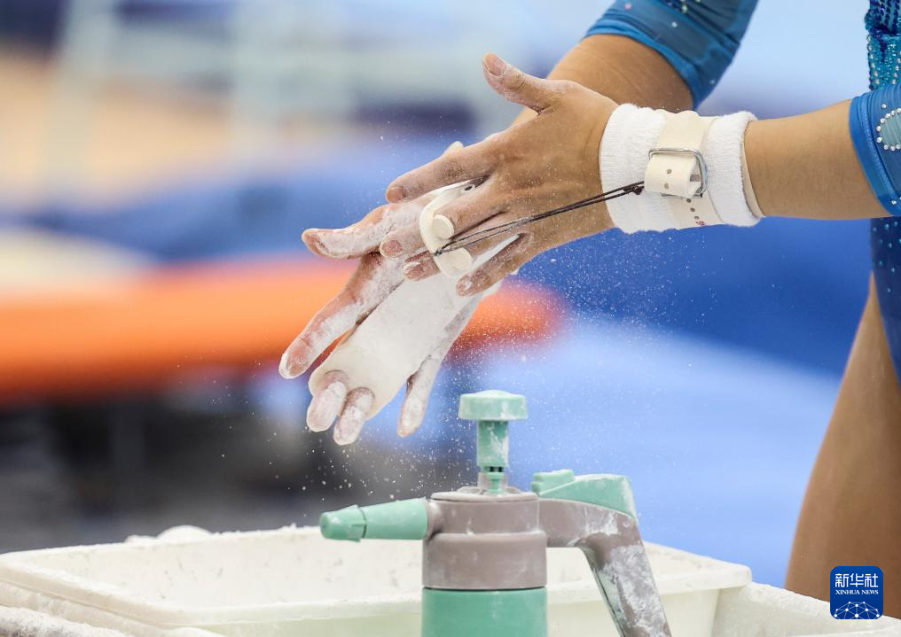 3月26日,邱祺缘在高低杠测试前。新华社记者 王东震 摄
