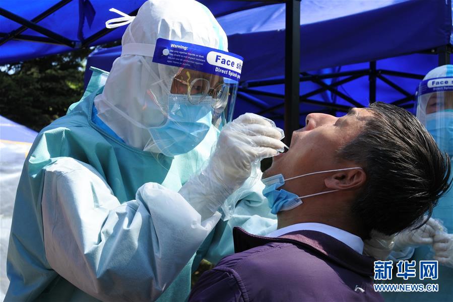 在黑龙江省牡丹江市西安区江滨公园新冠病毒核酸检测采样点,社区居民在进行核酸检测采样(6月7日摄)。新华社发(张春祥摄)
