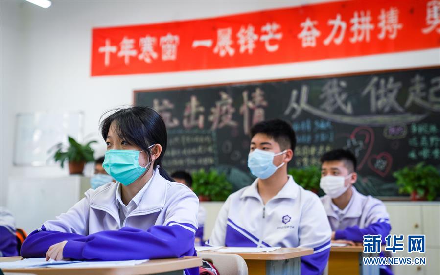 哈尔滨市实验学校毕业年级的学生在教室上课(5月28日摄)。当日,黑龙江省初中毕业年级返校复课,有序恢复在校学习生活。新华社记者 王松 摄