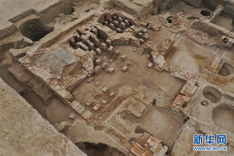 这是新疆唐朝墩古城浴场遗址(2019年8月18日摄,无人机照片)。 新华社发(中国人民大学考古文博系供图)