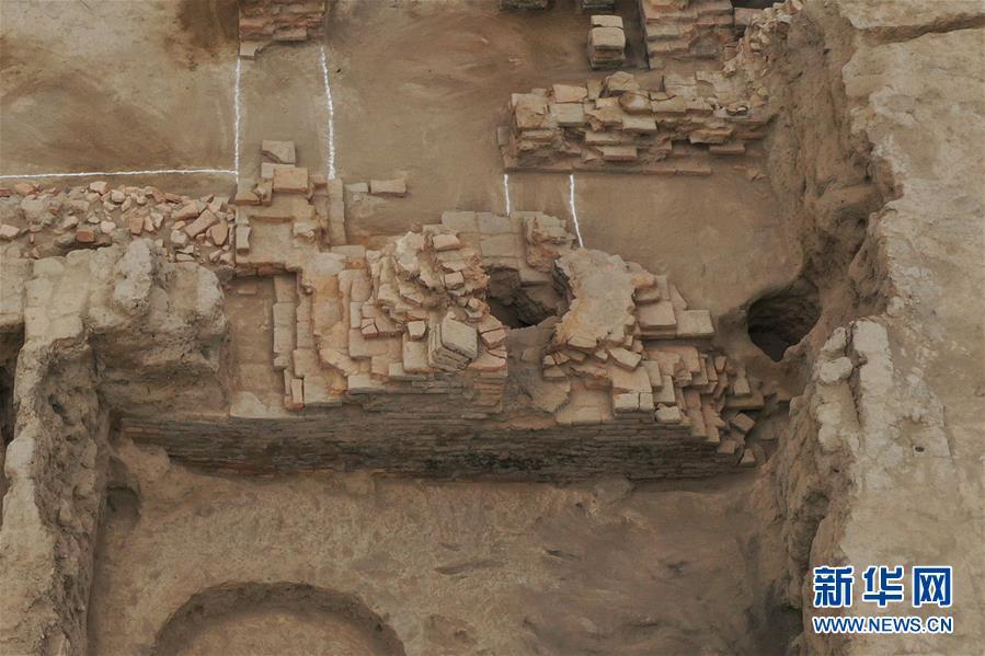 新疆唐朝墩古城浴场遗址西侧支撑柱结构(2018年10月8日摄)。 新华社发(中国人民大学考古文博系供图)