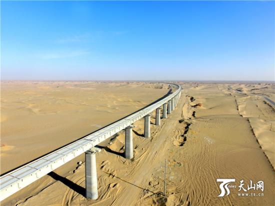 据了解,和若铁路是新疆环塔里木盆地铁路环线的最后一环,自2020年5月全线铺轨以来,目前已完成230公里的钢轨铺设,预计2022年建成通车,届时南疆地区交通运输条件将得到极大改善,和田地区各族群众出疆可通过和若铁路、格库铁路通往内地城市,不必再绕道吐鲁番,出疆路程将缩短1000多公里。